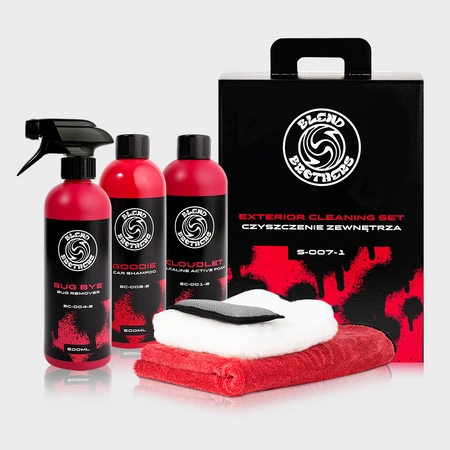 EXTERIOR CLEANING SET to znakomity zestaw do czyszczenia zewnętrza samochodu. Zawiera zasadową pianę aktywną CLOUDLET, szampon samochodowy GOODIE oraz środek do usuwania owadów BUG BYE. Dodatkowo w zestawie znajduje się bardzo chłonny ręcznik do osuszania samochodu CRAFTIE, wełniana rękawica do mycia samochodu i pad do usuwania owadów. Jest to kompleksowy zestaw do mycia zewnętrza Twojego samochodu. Idealnie nadaje się również na prezent dla pasjonatów detailingu na każdym etapie zaawansowania!