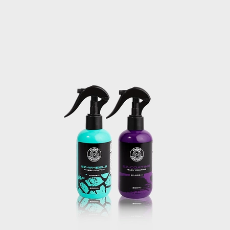 EZ-WHEELS Wheel Coatingto zaawansowana powłoka polimerowa stworzona specjalnie do zabezpieczania felg oraz innych powierzchni metalowych. Buduje na powierzchni felg trwałą, hydrofobową barierę, która skutecznie ułatwia utrzymanie ich czystości oraz zapewnia ochronę przed szkodliwymi czynnikami zewnętrznymi, takimi jak sól, woda, pył z klocków hamulcowych czy środki chemiczne. Produkt jest niezwykle łatwy w użyciu, a jednocześnie zapewnia długotrwałe zabezpieczenie. Efekt powłoki utrzymuje się przez około 6 miesięcy, oczywiście pod warunkiem odpowiedniej pielęgnacji.